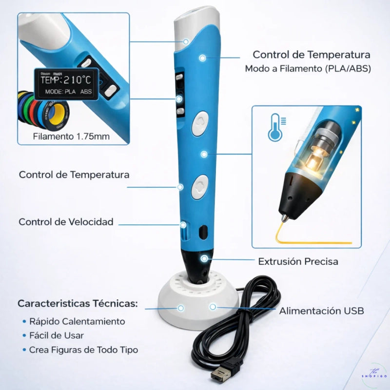 Este bolígrafo va más allá del juego; es una herramienta poderosa para el aprendizaje. Estimula la resolución de problemas, el pensamiento espacial y la motricidad fina, empoderando a tu hijo para transformar sus ideas en creaciones tangibles y fomentando su curiosidad por el futuro.