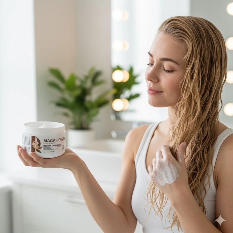 No más días de cabello rebelde. Nuestra mascarilla Maca Power con colágeno es tu arma secreta para una transformación total. Repara el daño, elimina el frizz y deja tu melena increíblemente suave y brillante. ¡El cambio es visible desde la primera aplicación!