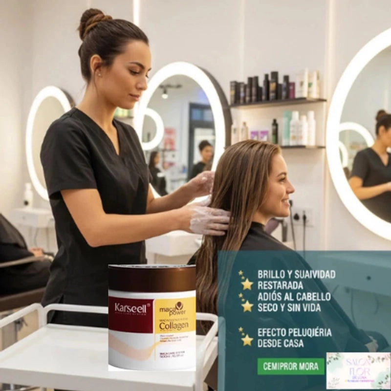 Di adiós al cabello seco y encrespado. Con la mascarilla Karseel colágeno, tu melena lucirá brillante y suave como recién salida del salón, ¡sin salir de casa! Siente la transformación y recupera tu confianza al instante.